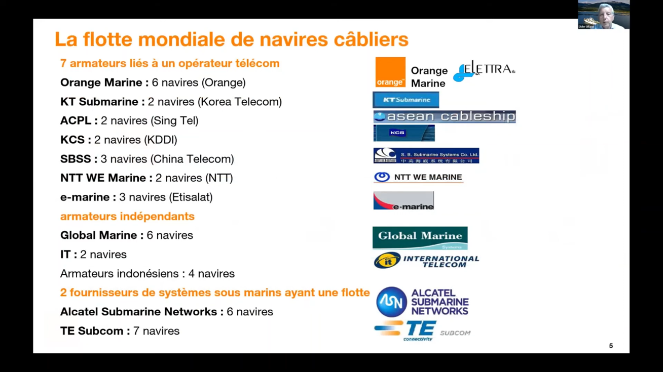 Les armateurs de navires câbliers, tels qu’Orange Marine, Global Marine et Elettra jouent également un rôle clé dans la pose et la maintenance des câbles sous-marins. Ils disposent en effet de navires spécialisés capables de poser des câbles en haute mer et de réparer les coupures, qui sont souvent dans des conditions difficiles. Ces navires sont équipés de technologies avancées pour manipuler les câbles avec précision et pour intervenir rapidement en cas de problème.